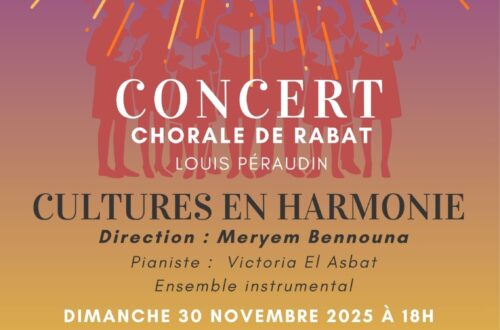 Concert de la Chorale de Rabat Louis Péraudin – Cultures en harmonie Venez vivre un voyage musical exceptionnel avec la Chorale de Rabat – Louis Péraudin.Un moment où les voix et les instruments tissent un pont entre les peuples, les siècles et les traditions. Des plaines du Pakistan aux montagnes de l’Andalousie espagnole, de la ferveur du dhikr soufi aux élans lumineux d’un chant latin, ce concert vous invite à traverser des univers qui, d’ordinaire, ne se rencontrent pas. Les timbres se mêlent :le souffle ancien des chants sépharades, la noblesse des pages baroques européennes, la douceur méditative d’une prière scandinave… Et, autour du chœur, une palette instrumentale unique —…